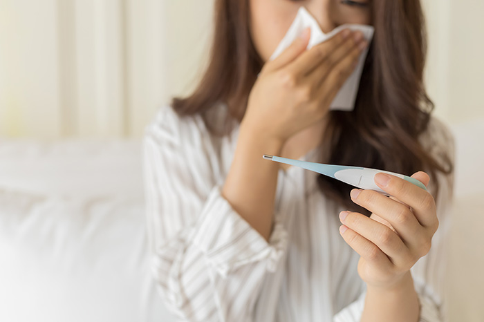インフルエンザにかかると1~3日間ほどの潜伏期間の後に、38℃以上の発熱、悪感、頭痛、全身倦怠感、筋肉痛・関節痛などが突然現われ、咳、鼻汁、のどの痛みなどの上気道炎症状がこれに続き、約1週間の経過で軽快するのが典型的なインフルエンザです。一般的なかぜと比べて症状が強いことが多いですが、非典型的な経過をたどるインフルエンザもあるため要注意です。多くの人は自己免疫によって自然治癒しますが、乳幼児や高齢者、妊婦、免疫力の低下、喘息、心臓病、腎臓病、糖尿病などの持病をもつ人は二次的な細菌感染症を起こしやすくなり危険が増加します。